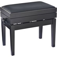 Kaksipaikkainen korkeussäädettävä pianopenkki, musta kiiltävä viimeistely ja keinonahkaistuimet