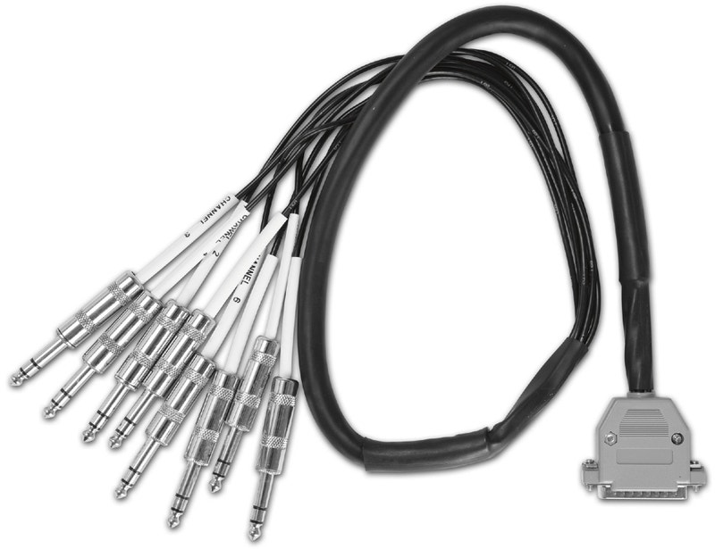 Tuotenumero 39079044m multikaapeli, jossa 8 x balansoitua 6,3mm stereoplugia ja D-sub-urosliitin