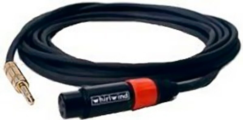 Musta adapterijohto jossa metallinen XLR-naarasliitin ja metallinen stereoplugi.