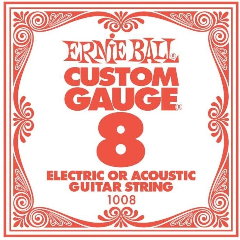 Ernie Ball Plain Steel Electric or Acoustic Guitar Strings are made of specially tempered tin plated high carbon steel used on electric and acoustic guitars. Ernie Ball revolutionized the market by offering Custom-Gauge single string options allowing guitarists to create personalized string sets.