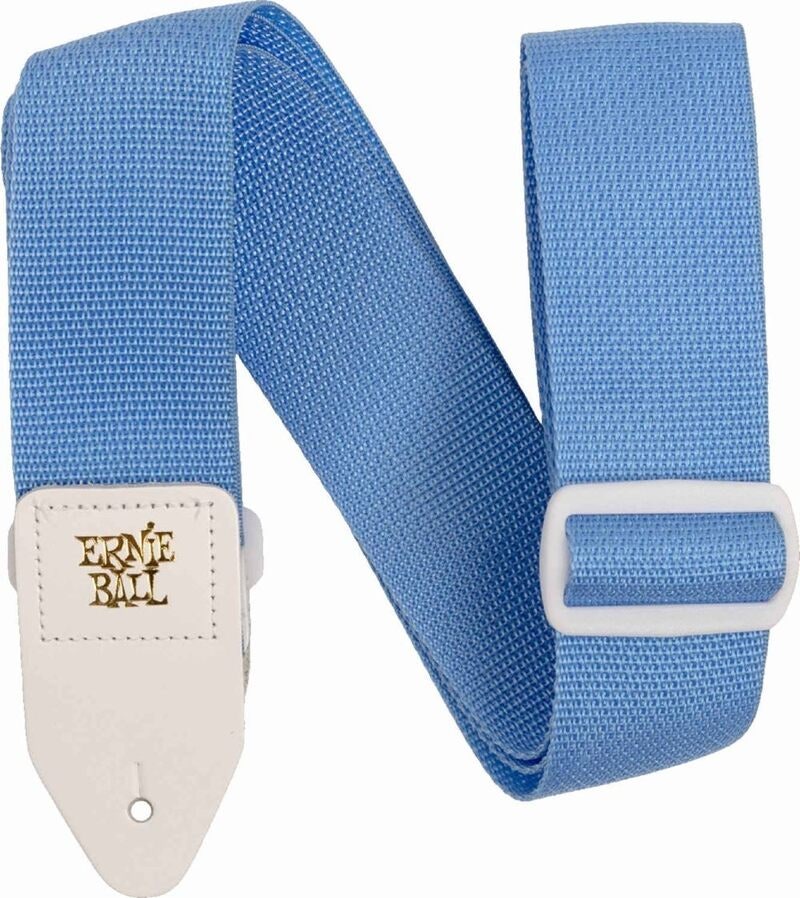 Ernie Ball 5348 Polypro Strap Guitar Strap Soft Blue with White Leather Ends.
