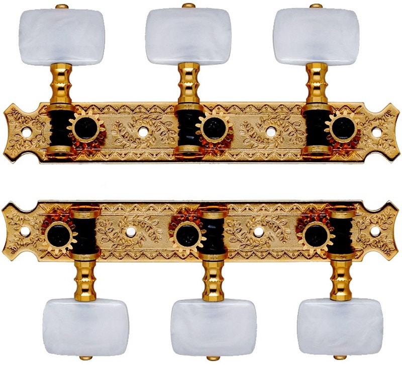 Klassisen kitaran virityskoneisto. Kullattu, helmiäisnupit.