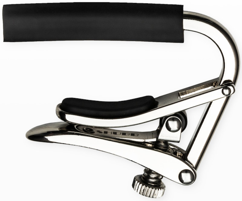 When the Shubb capo was first introduced about 40 years ago, guitarists throughout the world fell in love with it. They’re still in love with it today. It has been given a few tweaks through the years, but its basic mechanical principle remains the same: a unique over-center locking mechanism that provides an unrivaled combination of power, speed, accuracy and ease of use. One smooth flip of the lever locks it securely in place, and removes it just as quickly