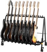 Tuotenumero 4075155Kokoontaitettava ja pyörillä varustettu kitarateline viidelle sähkökitaralle, bassolle tai akustiselle kitaralle.