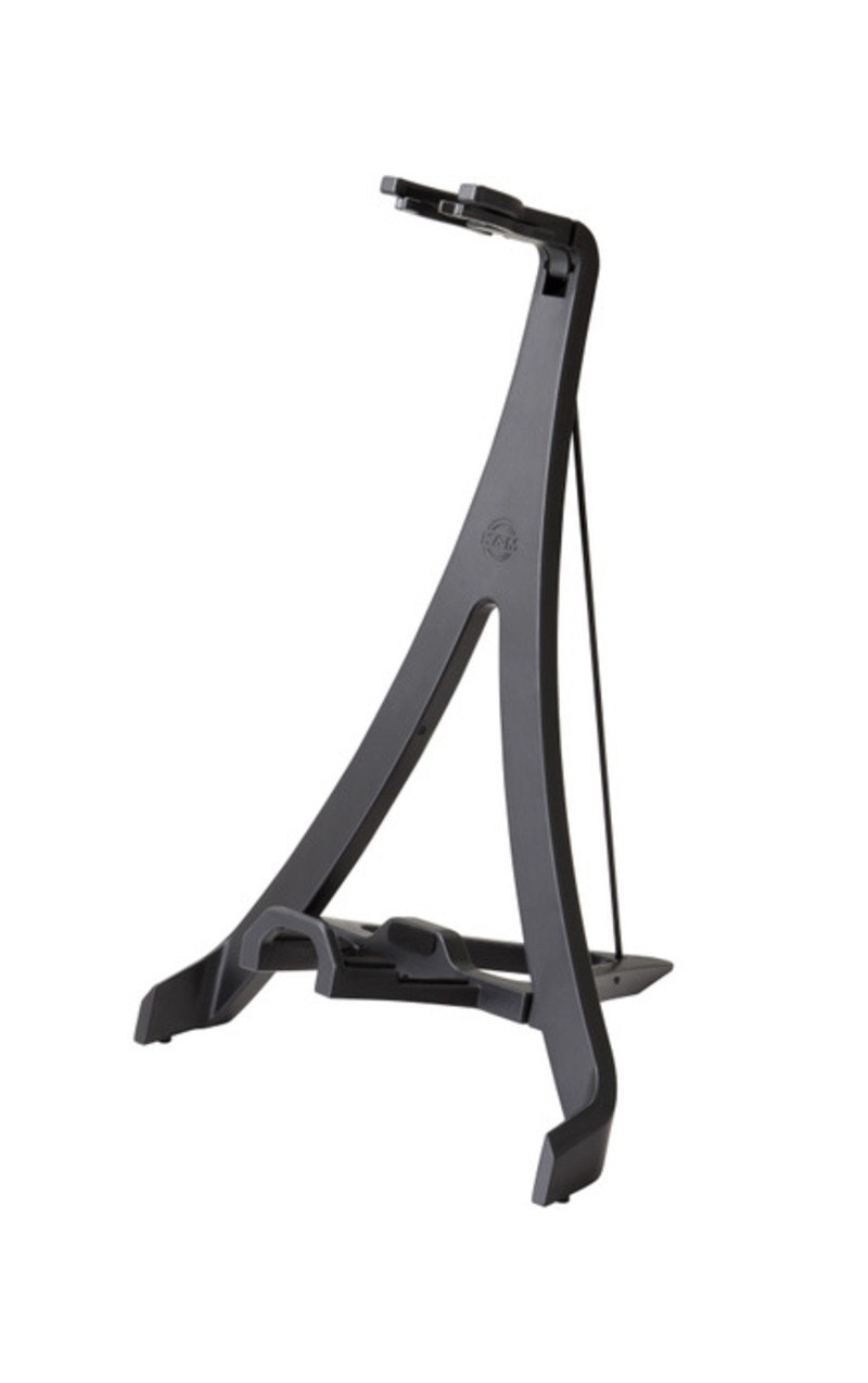 Normaalia korkeampi ja uniikisti muotoiltu A-mallinen teline akustisille tai sähkökitaroille. Yksiosainen runko on vakaa, kestävä ja kevyt käsitellä. Teline kulkee mukanasi vaivattomasti sen kokoontaitettavan ja litteän rungon ansiosta. Telineen tukivarret on päällystetty pehmeillä huopamateriaalilla, joka suojaa soittimesi pohjaa naarmuilta ja vaurioilta. Teline sopii kaikille lakkapinnoille, mukaan lukien nitrolakka. Kätevä kaulalukko varmistaa, että soittimesi pysyy tukevasti paikoillaan telineessä.