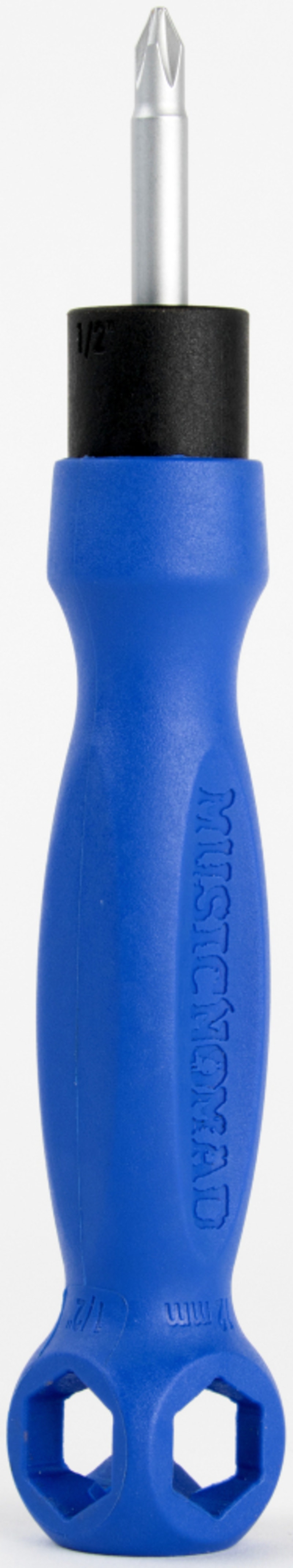 Unohda monen ruuvimeisselin, mutteriavaimen ja jakoavaimen kantaminen, kun Octopus 8 'n 1 Tech Tool hoitaa homman! MusicNomadin patentoitu, innovatiivinen muotoilu on täydellinen lähtö- ja säätöjakkien, potentiometrien, virityskoneistojen holkkien ja ruuvien kiristämiseen tai löysäämiseen. Työkalu sisältää sekä ristipää- että talttapääruuvimeisselin käännettävällä varrella ja on suunniteltu yleisimmille kuusiokoloavainkokoille: 10 mm, 12 mm, 14 mm, 1/2" ja 7/16". Irrota ruuvimeisseli ja käytä 1/2" kapeaprofiilista kuusiokoloavainta upotettujen potentiometrien kiristämiseen. Sano ei metallille! Kuusiokoloavaimemme on valmistettu vahvasta ballistisesta nailonista, joka kestää kovaakin käyttöä ilman, että se naarmuttaa laitteistoasi tai viimeistelyäsi. Pieni kooltaan, mutta suuri hyödyiltään – tämän 15 cm työkalun pitäisi löytyä jokaisesta kitaralaukusta.