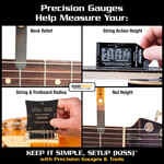 KEEP IT SIMPLE, SETUP (KISS)™ -menetelmämme ja mittareidemme avulla voit tarkistaa kitarasi tärkeät alueet ja käyttää työkaluja oman säädön tekemiseen. Aloituspaketti sisältää mitat, jotka soveltuvat kaikille sähkökitaroille, akustisille kitaroille, klassisille kitaroille ja bassoille. Mukana on myös kaksi työkalusarjaa, joilla voidaan säätää useimpia kitaroita ja bassoja. Paketti ei sisällä satulaviiloja tai akustisen kitaran ääniaukon kaularaudan säätöavaimia.