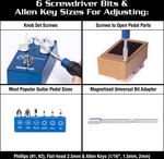 Pedaalien huoltosarja, sisältää vaihtopäitä, kuusiokoloavaimen, harjan, kiillotusliinan sekä puhdistusaineet pedaaleille ja elektroniikalle.