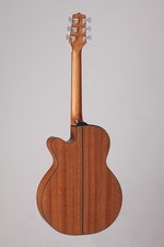 The Taka-mini GX18CE-NS is a 3/4 size guitar with a full size voice. Featuring custom designed bracing, a solid spruce top in a scaled down version of the famous Takamine NEX body style, it will definitely inspire to extend your playing time. Its solid spruce top, Mahogany back and sides and laurel fingerboard along with the NEX-style body gives it a sweet voice complimenting vocals perfectly. The TP4T preamp with built-in tuner makes this very cool guitar equally ideal for amplified live performances.