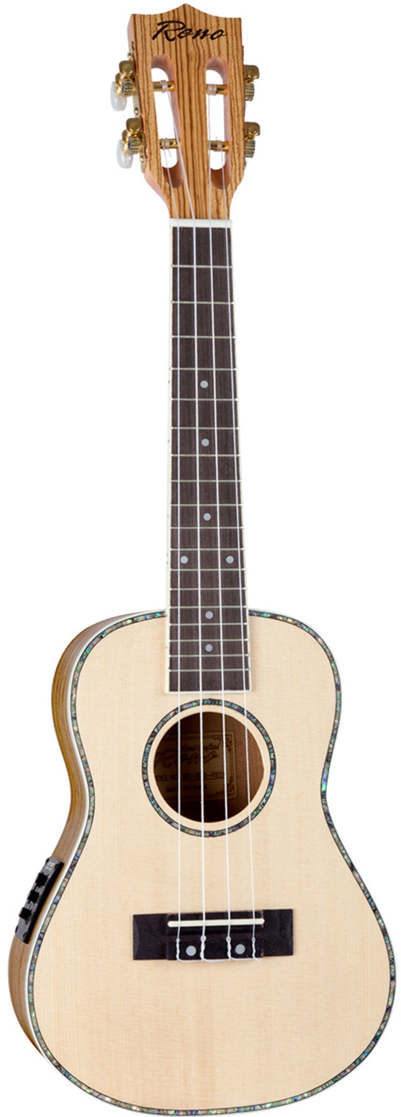 Tuotenumero 4333205Reno RU320E on 18-nauhainen, Belcat EQ-elektroniikalla varustettu Grand Concert-ukulele, jossa on täyspuinen kuusikansi ja zebrasivut ja -pohja. Loistavasoundinen ja näyttävä laatu-ukulele.