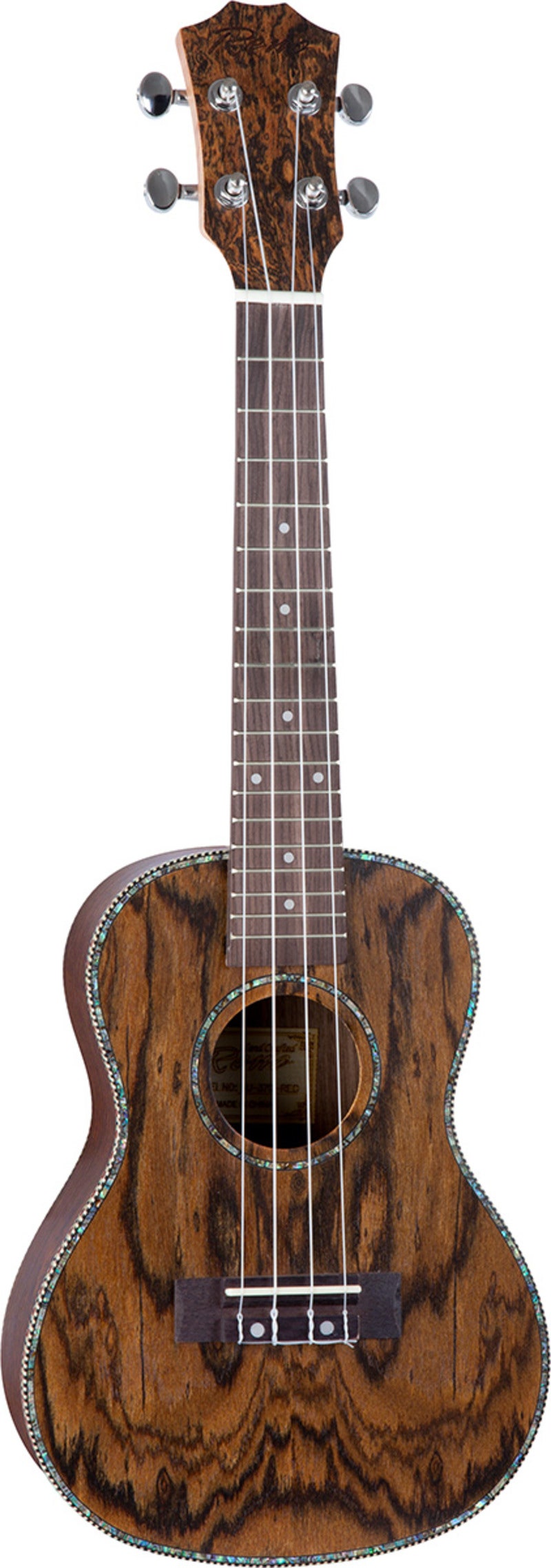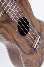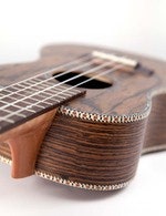 Grand Concert-ukulele, jossa on eksoottinen ja erittäin kaunis Caidie-kansi, -sivut ja -pohja. Natural.