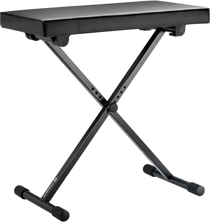 Säädettävä kosketinsoitinpenkki, jossa on korkealaatuinen keinonahkainen istuin. Penkki on helposti kokoontaitettava kuljetusta varten.