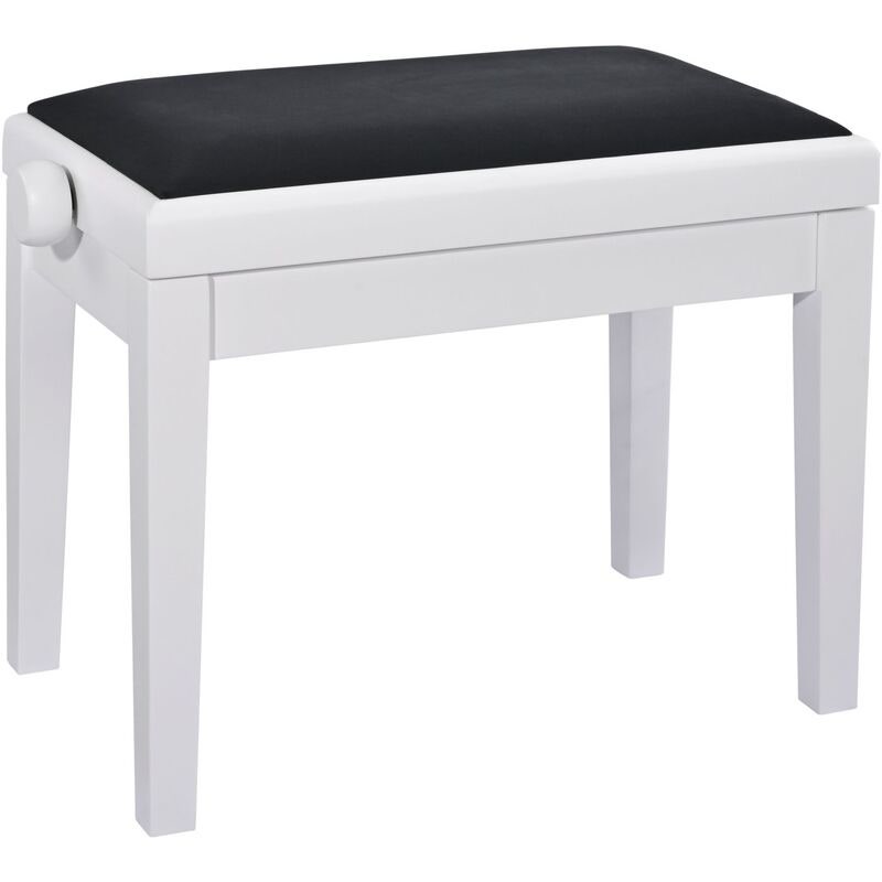 Tämä klassinen pianopenkki on valmistettu massiivipuusta, viimeistelty mattavalkoiseksi ja tuolin istuintyyny on verhoiltu mustalla samettikankaalla. Korkealaatuisista materiaaleista ja nykyaikaisella tekniikalla valmistetun penkin korkeutta voidaan säätää helposti, jotta soittajalle saadaan ihanteellinen istuma-asento.