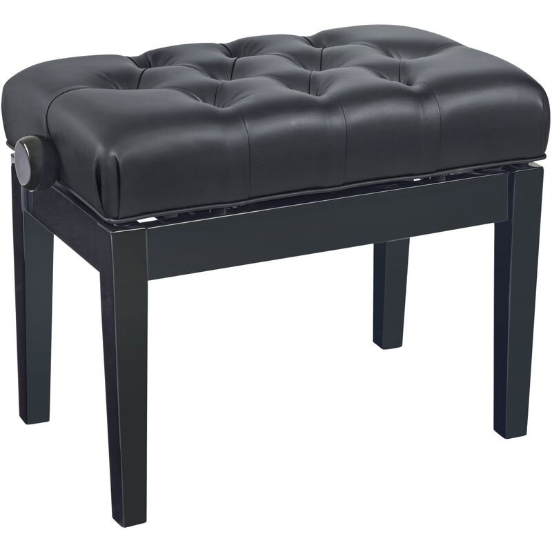 Hydraulinen pianopenkki pneumaattisella korkeussäädöllä, kiiltävällä mustalla viimeistelyllä ja tikatulla keinonahkaistuimella