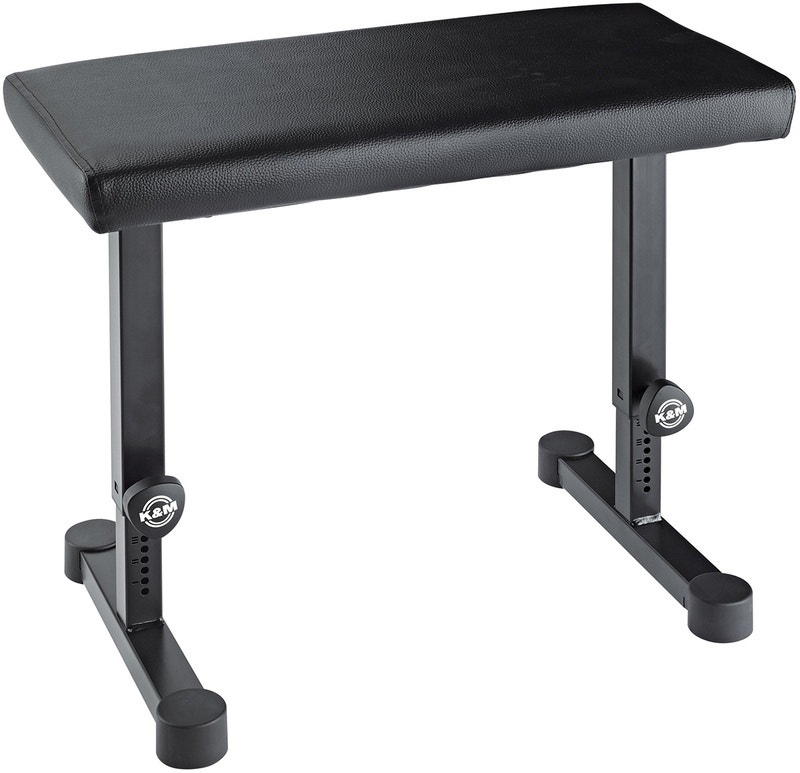 Yksinkertainen ja tyylikäs penkki, jonka teräksinen rakenne ja suuret pyöreät kumitassut tekevät tästä penkistä todella tukevan. Penkin istuinosa on päällystetty kulutusta kestävällä keinonahkalla. Kaksipuoliset jousikuormitteiset lukitusruuvit mahdollistavat tarkan korkeudensäädön vaivattomasti. Penkin runkoon kaiverrettu korkeusskaala helpottaa optimaalisen istumakorkeuden löytämistä.