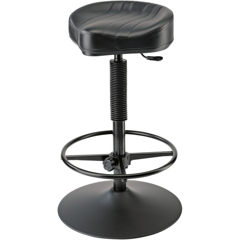 Tämä tuoli vangitsee katseet ja sen ergonominen satulaistuin on äärimmäisen miellyttävä istua. Kumirenkaalla vaimennettu jalusta on todella vakaa ja siinä on myös korkeussäädettävä jalkatuki. Tuolin korkeudensäätö on äärimmäisen helppoa integroidulla kaasujousella, joka vapautetaan istuimen alla olevalla säätövivulla. Voit säätää tuolin korkeuttaa portaattomasti 580mm – 835mm välillä.