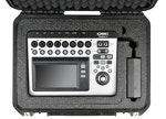 3i1813-7-TMIX Case, tehty QSC:n Touchmix miksereille. Sisällä pehmuste sopii sekä 8 että 16 kanavaiselle mikserille. Mukana myös tila virtalähteelle ja sen virtajohdolle sekä mini tai normaali kokoiselle iPadille.