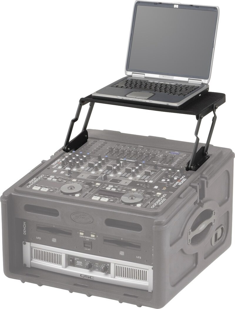 SKB-AV8, hylly esim. kannettaville tietokoneille. Asennetaan räkkehiin, joissa yläpuolista tilaa vähintään 8U. Sopii esim. SKB-82DJ, SKB-84DJ ja SKB -106DJ -koteloihin.
