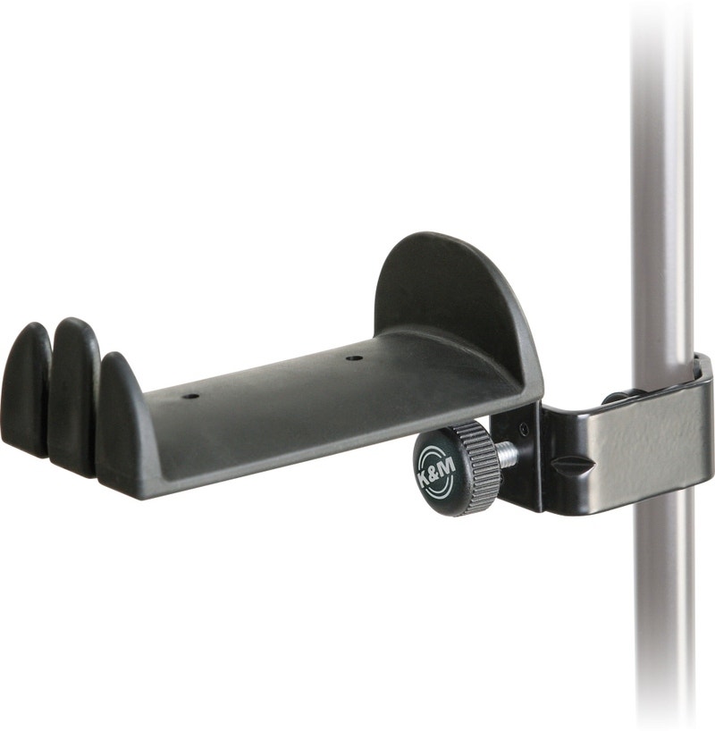 Kätevä jalustaputkeen kiinnittyvä kuuloketeline. Telineeseen mahtuu kahdet normaalisankaiset kuulokkeet. Voit lisäksi ripustaa neljät in-ear-kuulokkeet telineen uritettuihin sivuihin. Säädettävä puristinkiinnike kiinnittyy maks. 30mm paksuihin jalustaputkiin.