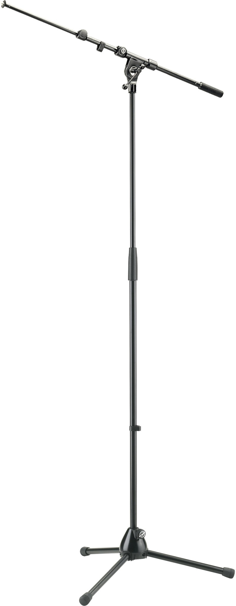 Puomillinen mikrofoniteline, jossa lyhyet taitettavat jalat ja kaksiosainen teleskooppipuomi