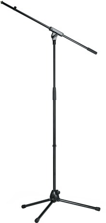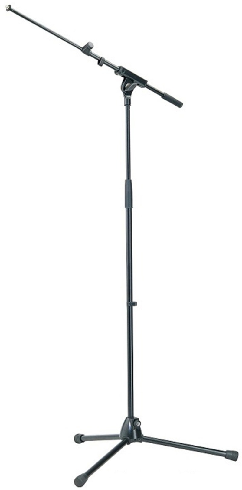 Tukeva puomillinen mikrofoniteline, jonka taitettavat jalat ovat kiinni jämäkässä sinkkivalupohjassa. Kaksiosainen teleskooppipuomi tuo lisää ulottuvuutta ja puomin kulman säätö tapahtuu suurella siipimutterilla.
