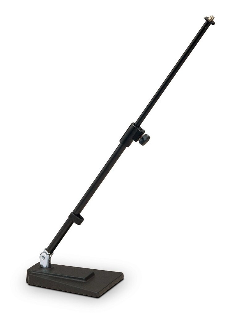 Suorakaiteen muotoisella valetulla jalustalla varustettu matala mikrofoniteline. Kaksiosainen ja kitkattomasti säädettävä teleskooppivarsi. Ihanteellinen rumpusetin mikitykseen studio-olosuhteissa.