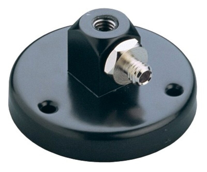 Musta laippakiinnike, joka mahdollistaa joutsenkaulojen pystysuoran ja sivuttaissuuntaisen kiinnityksen. 4 mm kaapelinsyöttöaukko.