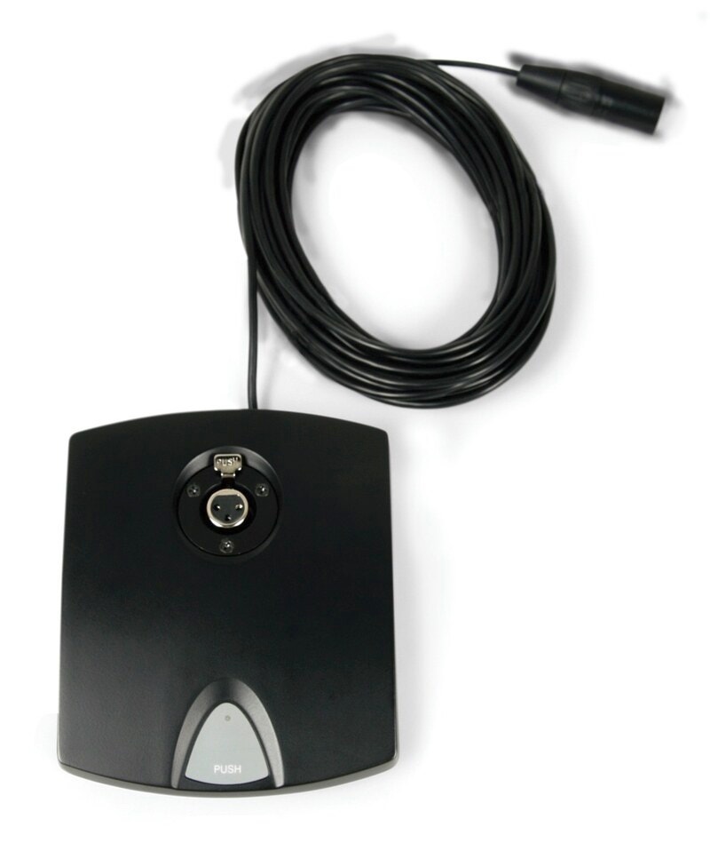 Tukeva mikrofonin pöytäteline, jonka integroituun XLR-naaras-liittimeen voit liittää joutsenkaulapidikkeen tai mikrofonin. Telineen takapaneelissa on euroblock-ulostulo sekä 10m XLR-johto. Ohjelmoitava painokytkin mahdollistaa "Push to talk" tai "Push to mute"-käytön ja kirkas LED-merkkivalo ilmaisee, kun mikrofoni on aktiivinen.