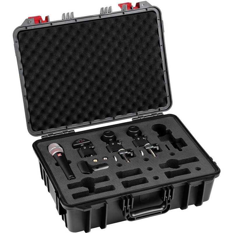 Tuotenumero 1315795V PACK Venue pitää sisällään neljä palkittua sE Electronics rumpumikrofonia, pidikkeet sekä kuljetuslaukun. V PACK Venye-setillä loihdit upean soundin rumpusetillesi