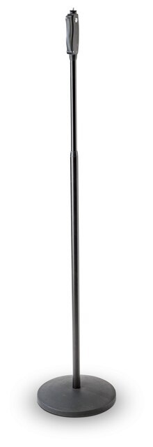 Suora mikrofoniteline. jonka tukevassa jalustakiekossa on tehokas tärinänvaimennus