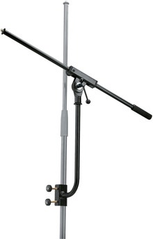 Tukeva puomillinen mikrofoniteline erikoispitkällä teleskooppijalustalla, jonka pohjana on tukeva...