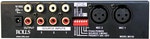 Laitteen ulostulo on RCA liittimillä. Mukana tulee12V DC virtalähde (Rolls PS27). Takana olevilla kuudella DIP-kytkimellä määritellään laitteen toiminta. Kahdella ensimmäisellä voidaan kytketä phantom jännite (12V) mikrofonituloon kondensaattorimikrofonia varten. Kolmas kytkin kytkee kolmannesta liitimestä tulevan signaalin monoksi ja seuraava kytkin kytkee koko laitteen monoksi. Seuraava kytkin antaa 3. tulolle prioriteetin, jolloin muut sisäänmenot vaimennetaan.