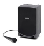 Tuotenumero 1516006Kompakti 100W aktiivikaiutin ladattavalla akulla ja Bluetooth®-yhteydellä. Paketissa mukana langallinen Samson käsimikrofoni