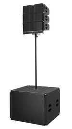 The fly bar can be inverted and used for any secure ground stacking or it can be used in conjunction with an M20 Mount for securing your array to the top of subwooffer. The fly system even offers a pull back adapter, often needed for creating extreme down angles for flown compact line arrays.