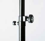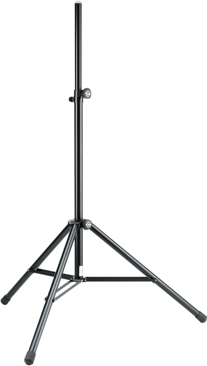 Kaiutinteline, joka on maailmanlaajuisesti hyväksytty standardi. Telineen kaikki kiristimet ovat kestävää sinkkivalua ja korkeudensäätö tapahtuu mukavasti jousikuormitteisella pultilla ja lukitusruuvilla. Muita miellyttäviä ominaisuuksia ovat teleskooppiputken ulosvetosuoja ja rungon sisällä oleva integroitu iskunvaimennusmekanismi.