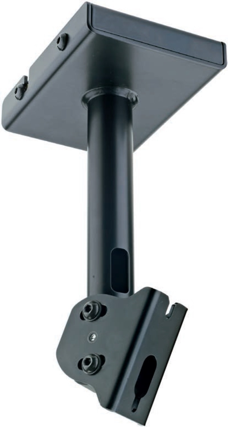 Tukeva kattoon kiinnitettävä kaiutinteline. Telineen suunnittelussa on huomioitu myös kaapelinhallinta, joka mahdollistaa siistin ja huomaamattoman kaapeloinnin. Kiinnityslevy kääntyy 0°-45° ja se on yhteensopiva kaikkien kaiutinkaappien kanssa, joissa kiinnitysruuvit ovat 70mm – 76,2mm jaolla.