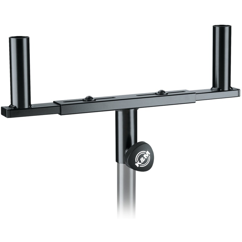 Vankka teräksinen kiinnityshaarukka kahdelle kaiuttimelle. Yhteensopiva kaiutinjalustojen kanssa, joiden halkaisija on 35mm.