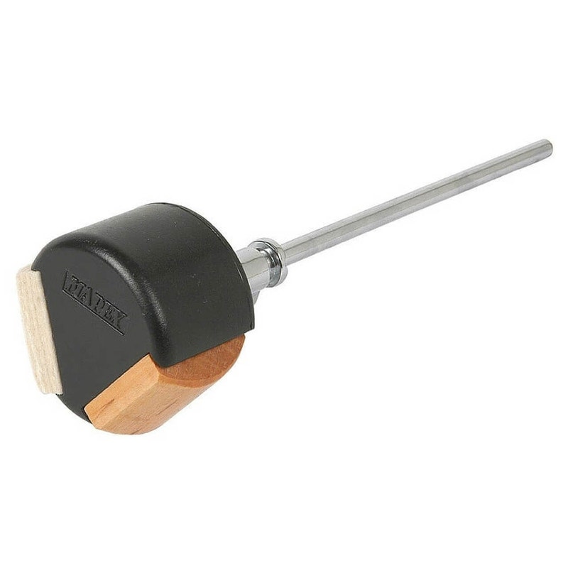 Pyöreä nuija, jossa on kolme erilaista soittopintaa. Saat siis kolme erilaista soundia tästä yhdestä nuijasta. Perinteisen huopapinnan lisäksi voit kokeilla muovista tai puista soittopintaa. Puupinta on soundiltaan todella kova ja muovisella pinnalla saat erottuvat ”läsähdyksen” kalvosta riippumatta. Nuijan varressa on säädettävä paino ja voit hienosäätää soittotuntumaa koskematta pedaalin jouseen.