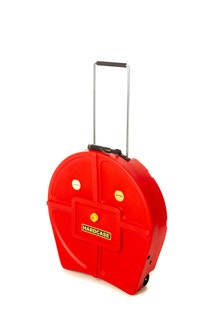 Punainen pyörillä ja vetokahvalla varustettu symbaalikotelo, joka on suunniteltu yhdeksälle symbaalille (maks....