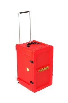 Punainen kotelo Cajon-laatikkorummulle. Soveltuu 50 x 30 x 30 cm kokoisille cajon-rummuille. Kotelossa pyörät...