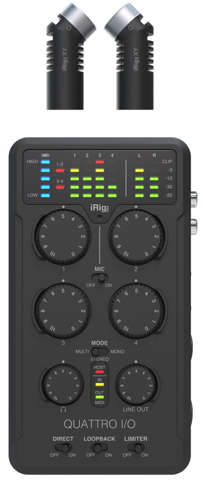 iRig Pro Quattro I/O Deluxe with included X/Y microphones will put those concerns to rest forever. It’s a professional-grade 4-in / 2-out portable audio and MIDI interface packed with everything you need for pristine field recording, content creation, streaming, podcasting and performing. Handle anything life throws at you without breaking a sweat.