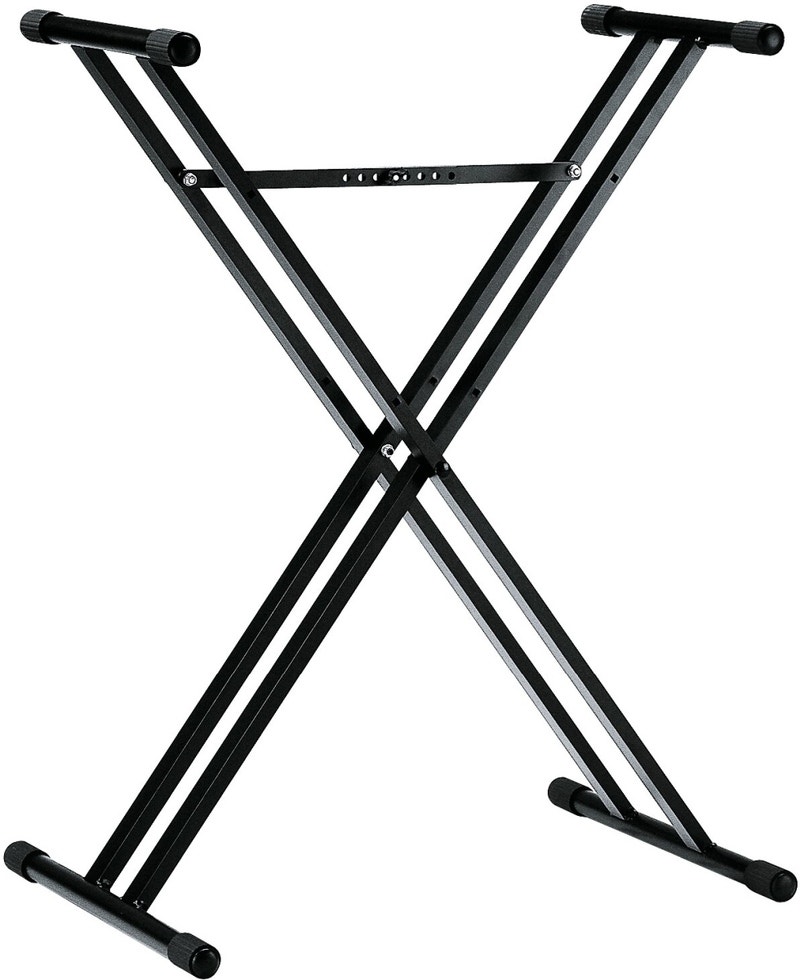 Tukeva kaksoistuettu X-teline, joka kantaa myös suuret kosketinsoittimet. Ainutlaatuisen korkeudensäätömekanismin ansiosta teline avautuu aina haluttuun korkeuteen ja leveyteen.