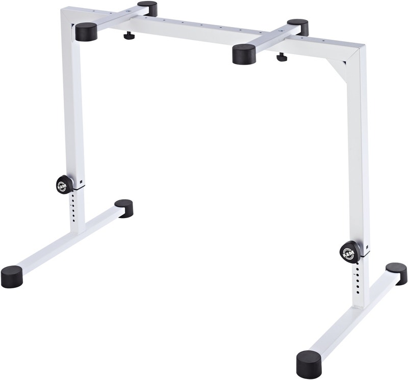 Tukivarret voidaan säätää erikokoisille kosketinsoittimille sopiviksi ja saat lisättyä telineeseen lisätasoja useammille kosketinsoittimille tai vaikkapa kannettavalle tietokoneelle.