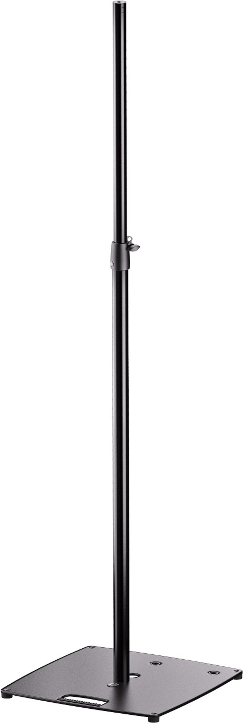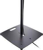 Tyylikäs teline valolaitteille ja kaiutinkaapeille. Painavan jalustalevyn ansiosta teline soveltuu käytettäväksi paikoissa, joissa lattiatilaa on vähän. Jalustalevyssä on integroitu kantokahva ja neljä tukevaa jalkaa sekä mahdollisuus kaapelinhallintaan. Korkeudensäätö on turvallista integroidun iskunvaimennusmekanismin, turvakoukun ja säätöruuvin yhdistelmällä. Käyttökorkeus on säädettävissä viidessä 200mm askeleessa. Integroitu M10-kierreholkki mahdollistaa poikkitangon kiinnittämisen tai valolaitteiden suoran kiinnityksen jalustaan.