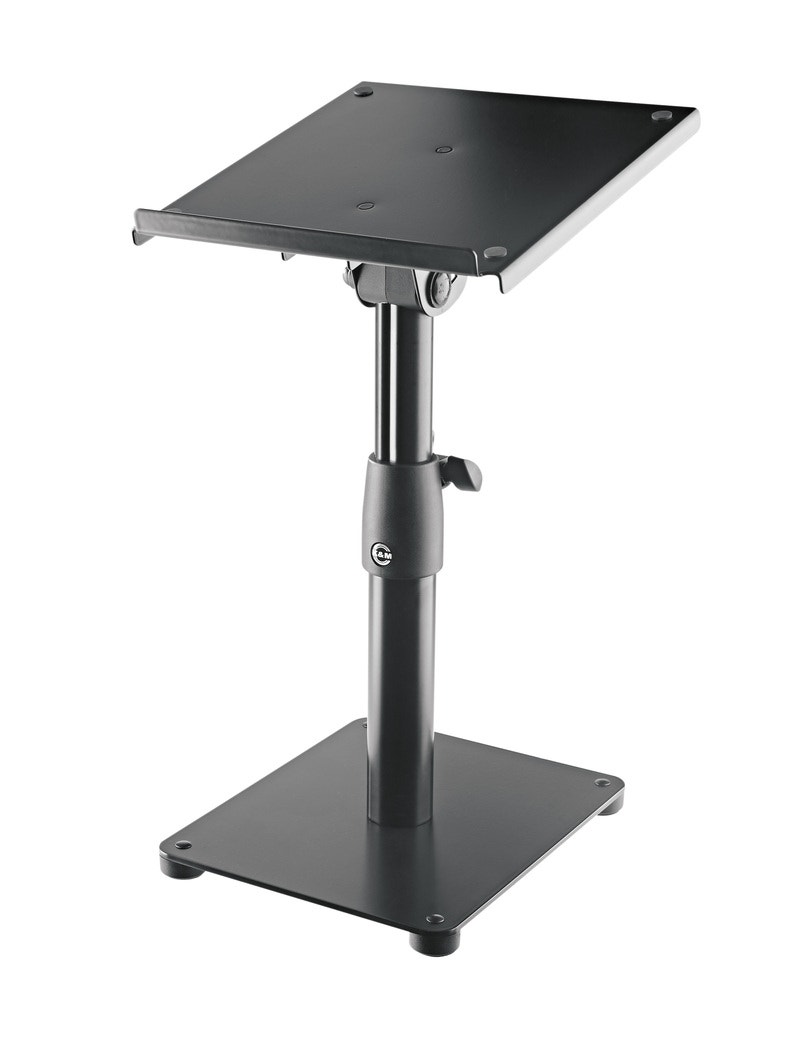 Korkeus-ja kaltevuussuunnassa säädettävä pöytäteline koti -ja studiokaiuttimille. Telineen kaiutintaso on säädettävissä 12.5° kulmaan ja kaiutintason etureuna on taitettu, joten kaiutin pysyy turvallisesti telineessä. Telineen pohjalevyn alla on neljä huovalla päällystettyä tukea, jotka eristävät ei toivottua tärinää ym. tehokkaasti. Voit säätää telineen korkeutta 350mm – 450mm välillä neljässä askeleessa.