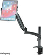 Päällekkäiset kiinnitysleuat integroiduilla kumityynyillä varmistavat turvallisen pidon ja poistavat ei-toivotut tärinä-äänet. Säädettävä kiinnitysosa huopapehmusteella lisää turvallisuutta, kun tabletin pidike on pystysuorassa asennossa ja estää tablettia putoamasta kovassakin menossa. Kätevä siipimutteri mahdollistaa kulman säätämisen, jotta jokainen käyttäjä voi helposti löytää itselleen ihanteellisen katselukulman. Vakaan puristinkiinnittimen ansiosta teline voidaan kiinnittää jopa 60mm paksuun tasaiseen pintaan. Näyttöä voidaan kallistaa, kääntää ja pyörittää äärettömästi, mikä takaa täydellisen katselumukavuuden ja parantaa työasentoa. Integroitu kaapelinhallinta varmistaa siistin ja ammattimaisen työtilan.
