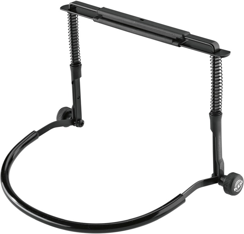 Huuliharpputeline, joka sopii erityisesti bluesharpuille. Telineen niskatuki on päällystetty pehmeällä muovilla ja telineessä on säädettävä jousijännitteinen soitinpidike.