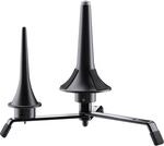 Tämä matala kolmijalkainen teline toimii alustana kaikille K&M-soitintapeille. Vankka ja kestävä teräsrakenne sekä kääntyvät ja lukittuvat jalat takaavat sen, että jalusta pysyy paikoillaan myös esiintymislavoilla ja ahtaissa orkesterimontuissa. Telineeseen voidaan kiinnittää jopa neljä soitintappia. Käytännöllinen teline voidaan taittaa nopeasti ja kompaktisti kuljetusta varten.
