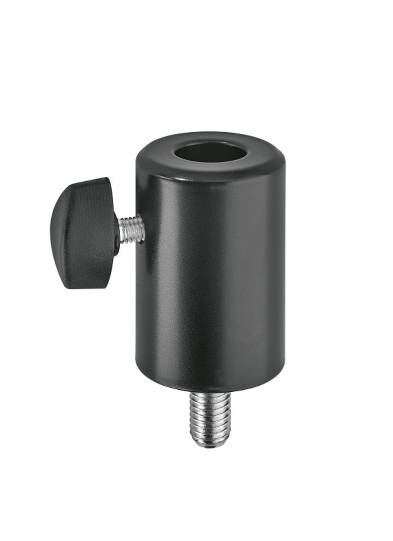 Adapter for mounting devices and equipment with 16 mm or 5/8" spigot connection. Thanks to the integrated screw, the mount can be screwed onto any light stand or TV spigot with M10 female thread.