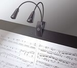 Tuotenumero 25512244Kompakti nuottivalaisin, jossa on tehokkaat kahden ledin valaisimet kahden joutsenkaulavarren päässä